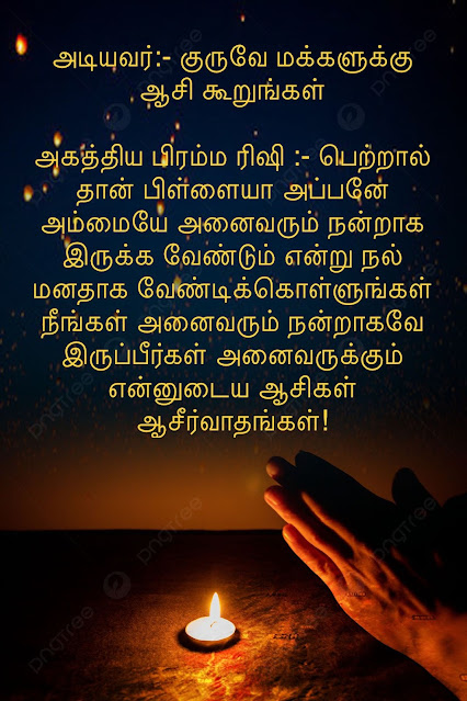 குருநாதர் ஸ்ரீ அகஸ்தியர் பெருமானின் அருள் மொழிகளை இன்றைய பதிவில் நாம் காட்சிப் பதிவுகளாக காண உள்ளோம். கண்களுக்கு விருந்தாகவும், நம் மனதிற்கு மருந்தாகவும் இன்றைய பதிவு இருக்கும் என்று நாம் நம்புகின்றோம். இதுவரை குருநாதர் அருள்வாக்கில் கூறிய மிக மிக முக்கியமான செய்திகளை சித்தன் அருள் வலைத்தளம் மற்றும் ஏனைய பகிர்வுகளில் இருந்தும் இங்கே தொகுத்து வழங்கியுள்ளோம். ஒரே ஒரு முறை படித்தால் நமக்கு குருவின் அருள் வாக்கு மேலோட்டமாகத் தான் புரியும். மீண்டும் மீண்டும் பல முறை படித்து, உள்ளத்தில் வைத்து, இவற்றை வேத வாக்காக கொண்டு, வாழ்க்கையில் நடைமுறைப்படுத்த முயற்சி செய்வோமாக!